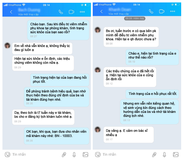 Chuyên khoa phụ khoa phòng khám đa khoa Vĩnh Yên đã tiếp nhận và điều trị thành công cho nhiều trường hợp bị mắc bệnh lý gây viêm “cô bé”. Nhận được phản hồi tích cực từ phía bệnh nhân: