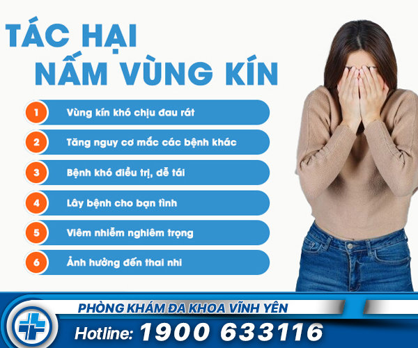 Bác sĩ phụ khoa tại Phòng khám đa khoa Vĩnh Yên cho biết: Bệnh nấm candida ở âm đạo nếu không được được điều trị kịp thời, hiệu quả thì sẽ gây ra nhiều tác hại ảnh hưởng đến cuộc sống và sức khỏe của người bệnh. Cụ thể như: