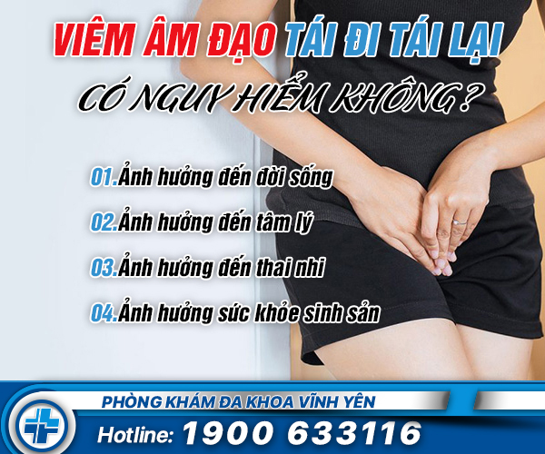 Bài viết trên đây đã chia sẻ thông tin về tình trạng viêm âm đạo tái đi tái lại. Nếu còn bất cứ băn khoăn gì hãy vui lòng liên hệ với Chuyên khoa thông qua Hotline: 1900 633 116 / 0333 633 116 sẽ được tư vấn miễn phí 24/7. Hoặc trực tiếp đến phòng khám đa khoa Vĩnh Yên để thăm khám và chữa trị bằng phương pháp tân tiến.