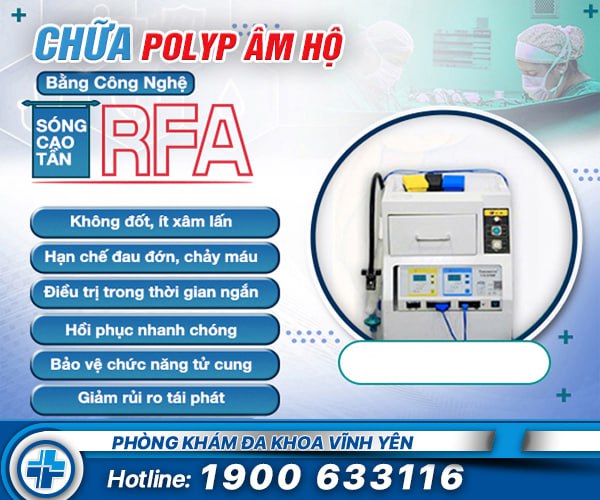 Sóng cao tần RFA sẽ giúp loại bỏ các khối polyp ở cổ tử cung. Đồng thời kết hợp với thuốc Đông Tây y để làm lành các tổn thương và giúp sớm phục hồi sức khỏe.