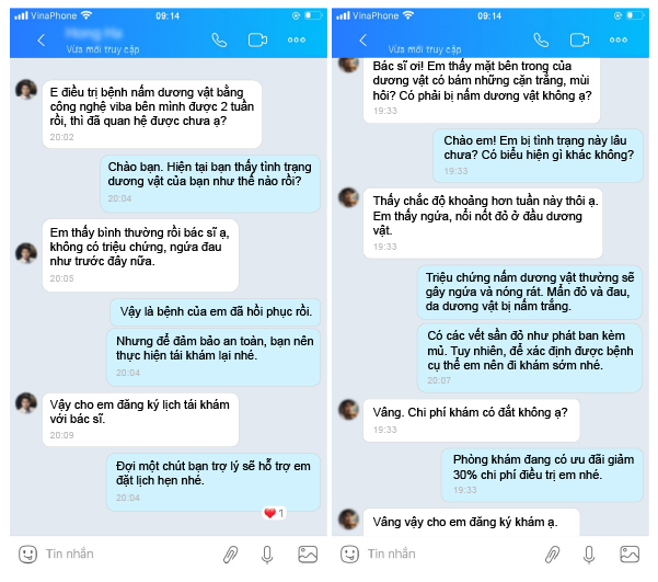 Sau khi thăm khám, phát hiện bị nhiễm nấm Candida, bác sĩ sẽ tư vấn và áp dụng Công nghệ Viba để chữa bệnh.
